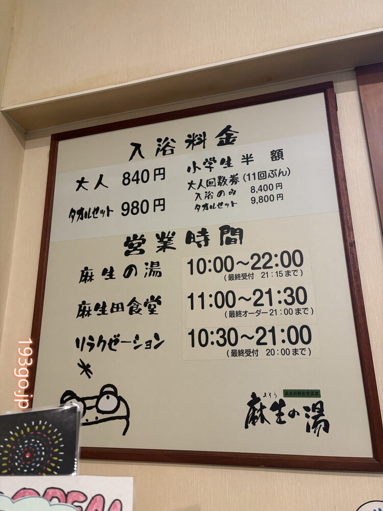 麻生の湯 入浴料と営業時間