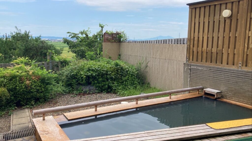 開放感ある露天風呂 のどかな風景、故郷で癒される