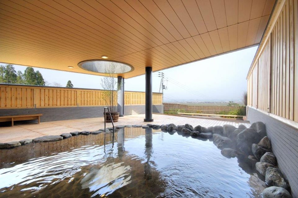 高台から長岡平野を一望できる露天風呂。