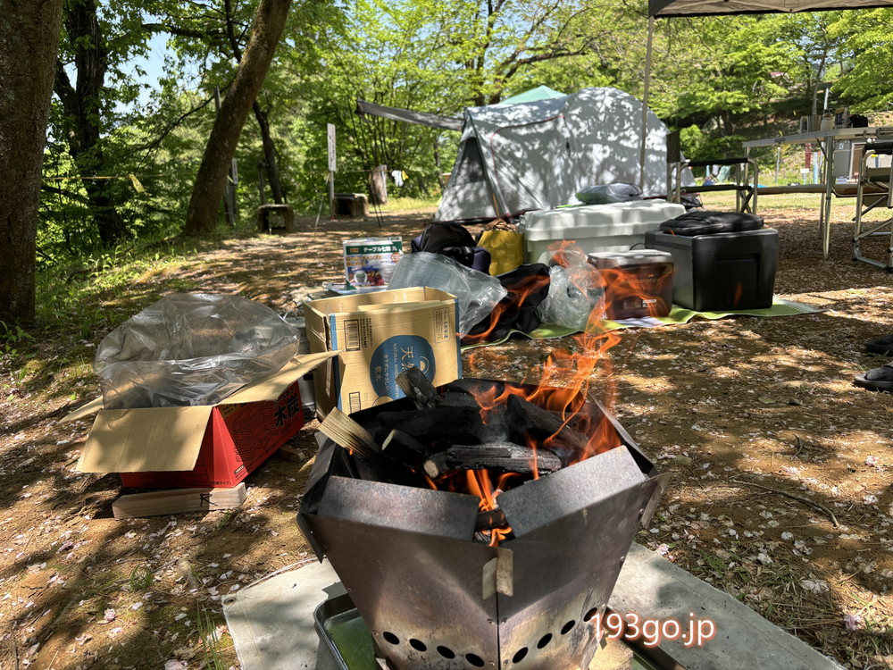 そのうちの一日は長岡市営キャンプ場(東山ファミリーランド)で、キャンプ道具を一式そろえている父とデイキャンプへ。