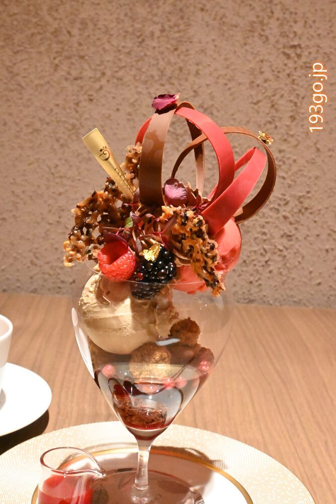 香り高いロイヤルミルクティーのアイス、濃厚なショコラクリームとベリーの酸味が調和した、世界でここでしか食べられない特別なパフェ。
