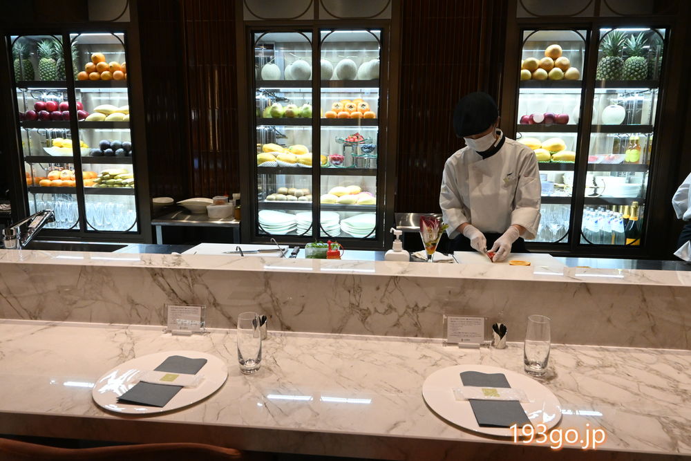 彩りあふれるフルーツのショーケース、特別感を演出するカウンターが象徴的。