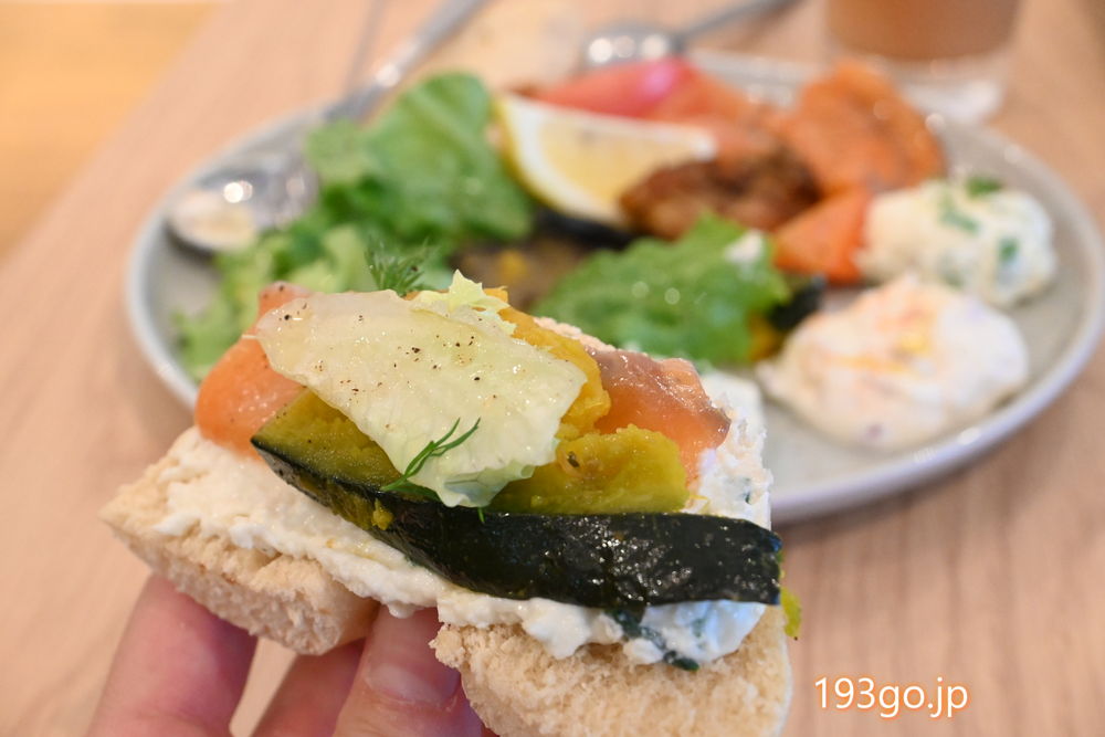 コクのある、なめらかなクリームチーズに色んな食材が組み合わさり、たっぷりの量が盛り付けられているので、これはベーグルもお替りしちゃうね。