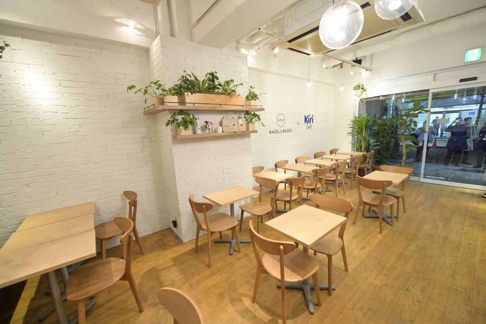 これまではベーグル専門店「BAGEL & BAGEL(ベーグル アンド ベーグル)」として営業をしていたが、クリームチーズブランド「Kiri(キリ)」とコラボした「BAGEL & BAGEL × Kiri Café 」としてリニューアルオープン。キリの常設店は日本初登場となる。