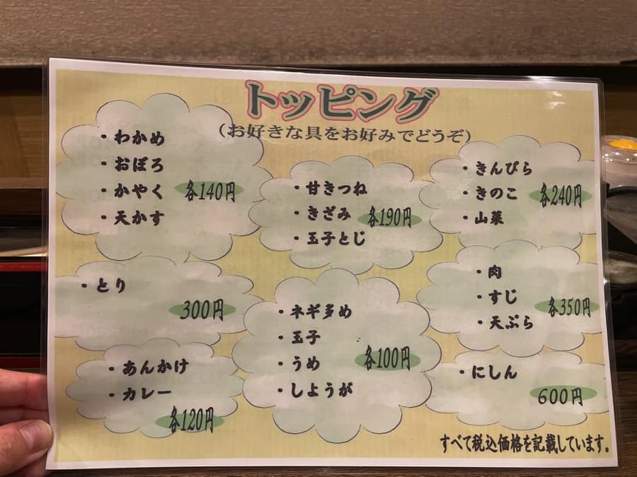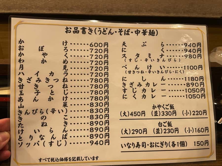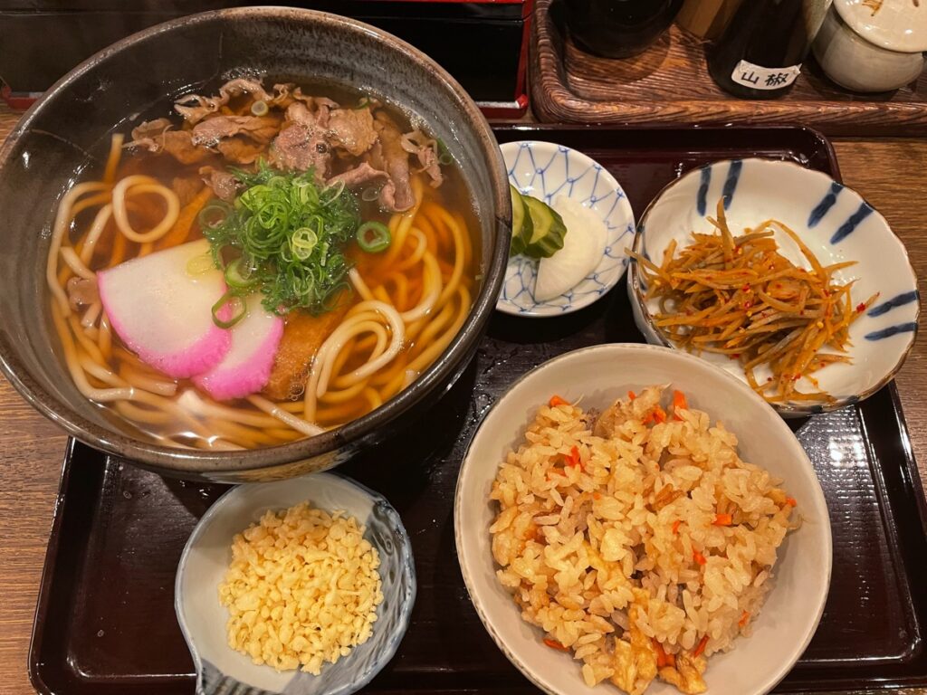 看板うどん「辨慶うどん」とかやくごはんセットを注文