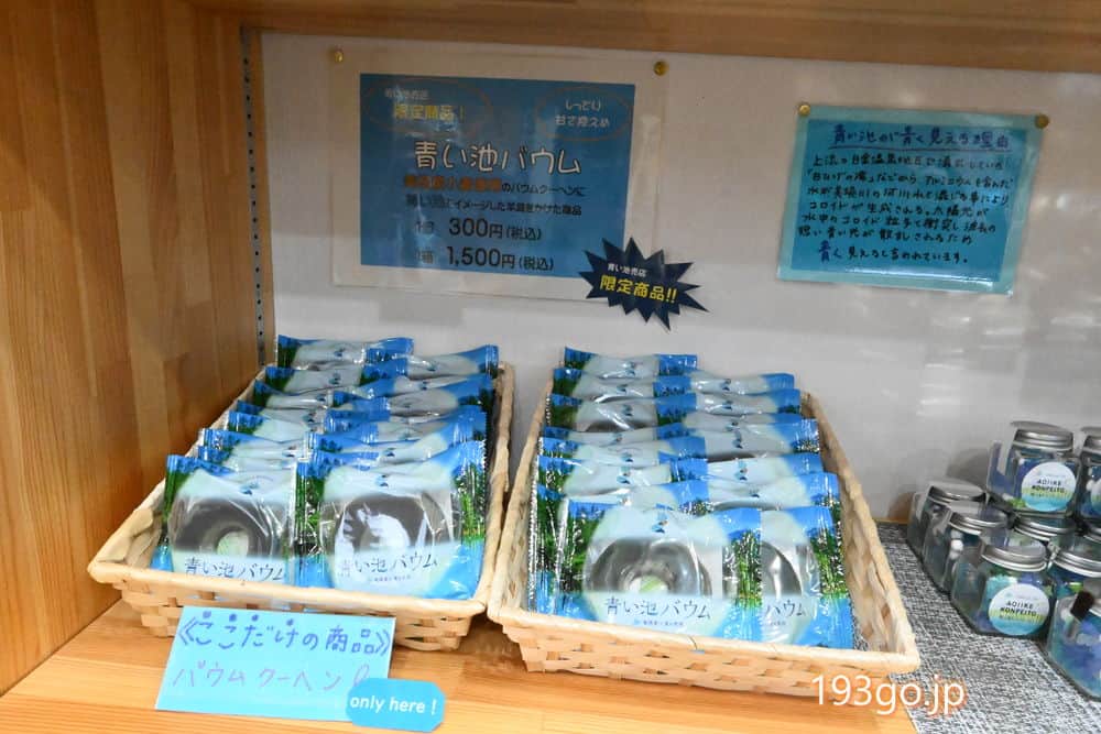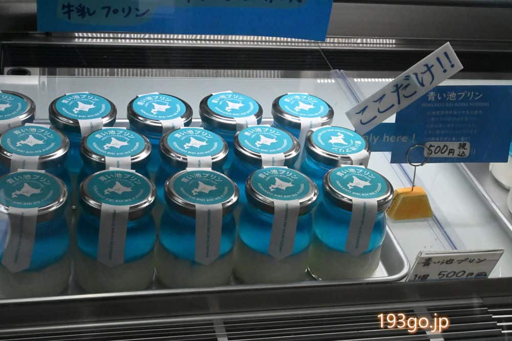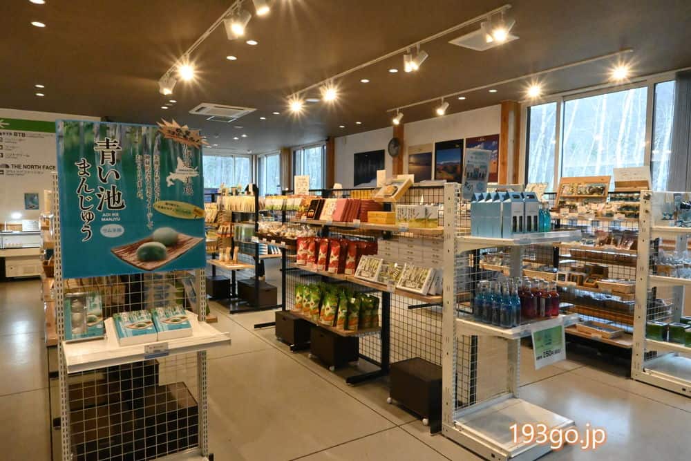 ショップにはオリジナル青い池土産や美瑛町土産。