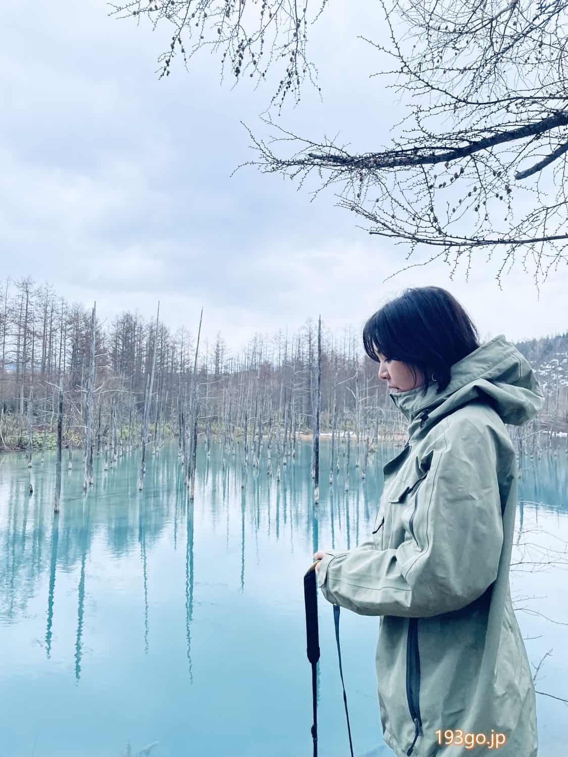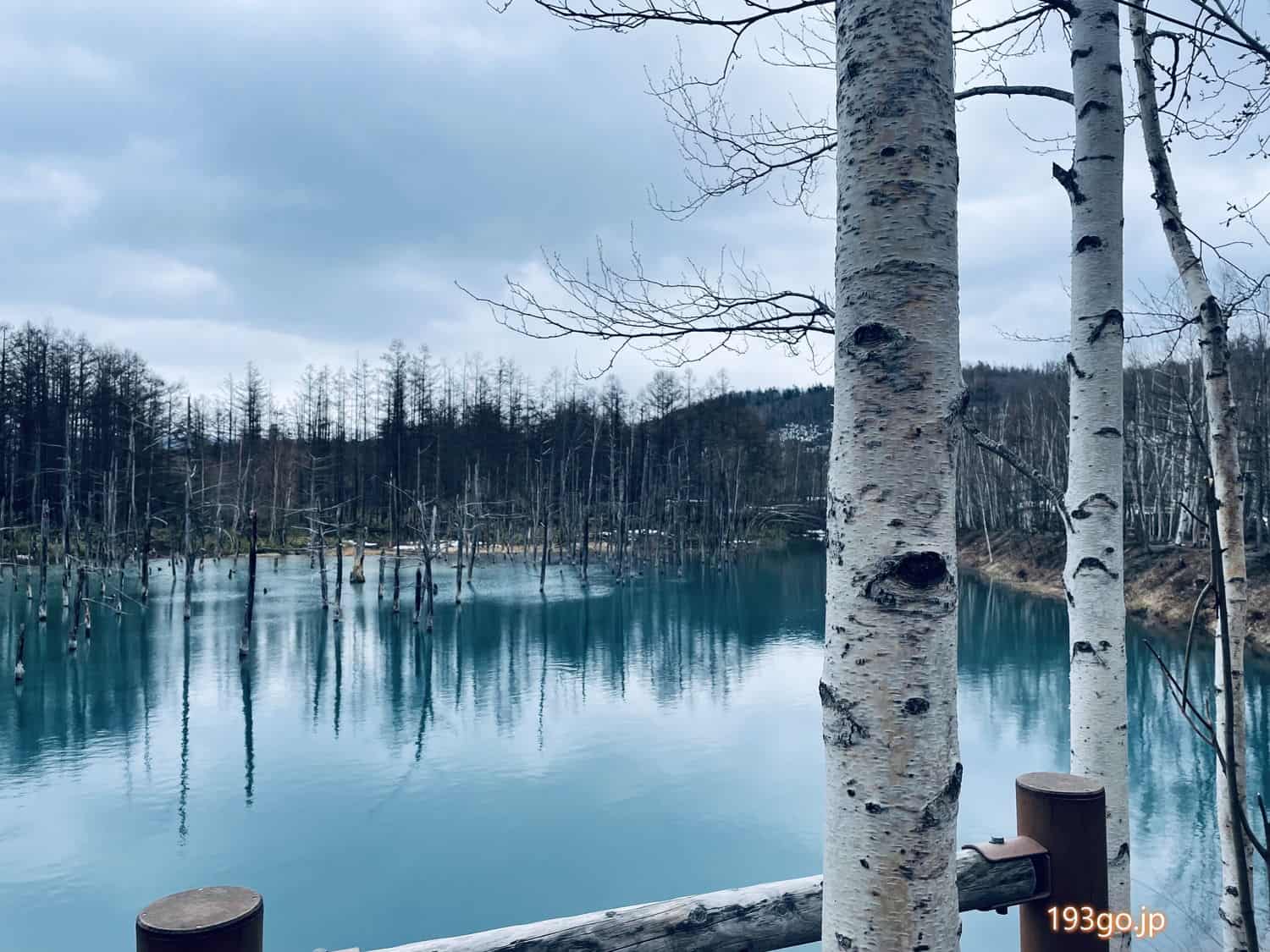 青い水面に木が反射し、美しく神秘のブルーだ。これが、BIEI BLUE(ビエイブルー)か。