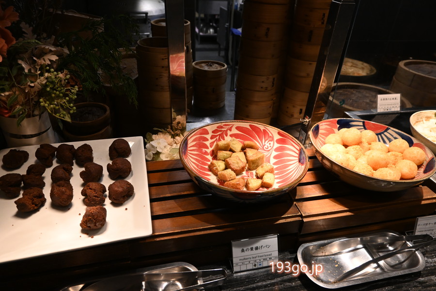 デザートはチーズ団子、マンゴープリン、桑の葉揚げパンやサーターアンダギー。