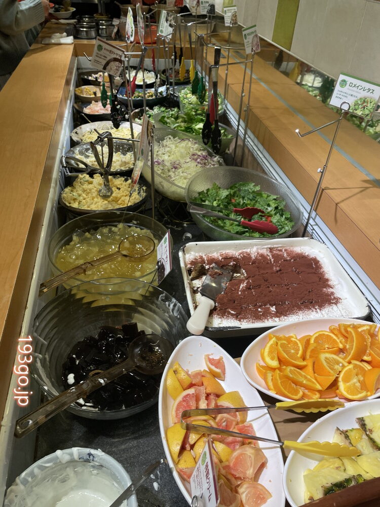 サラダバーには20種類以上。野菜の他パスタやフルーツ、ゼリー…
