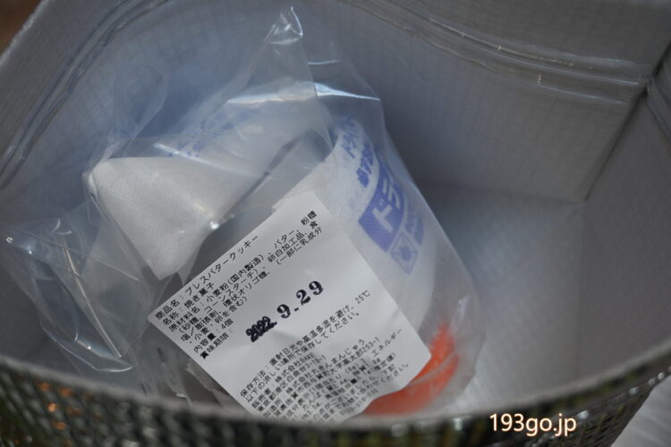 35℃超えでも、保冷バックの中にドライアイスで冷え冷えのカップアイス。