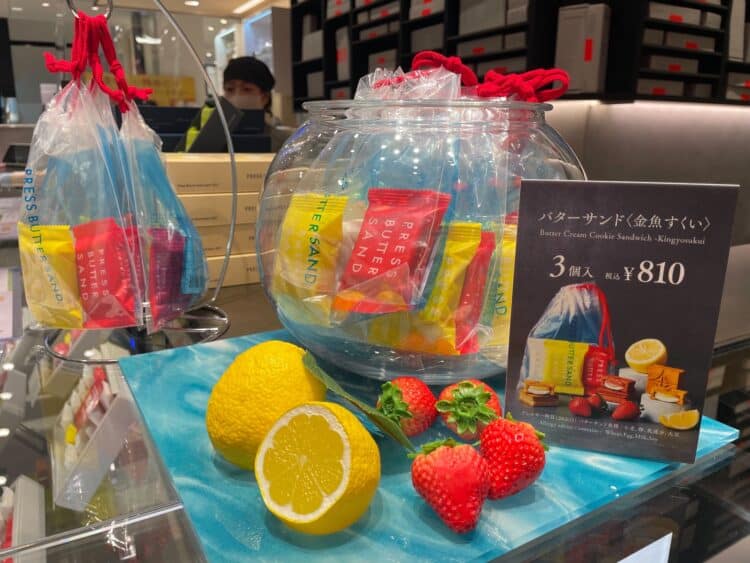 金魚すくいをイメージしたパッケージに金魚カラーパッケージが映える「檸檬」「あまおう苺」定番のバターサンドを詰め合わせた夏祭り感が満載のセットも期間限定で販売中。8月13日までのよう。価格は810円。