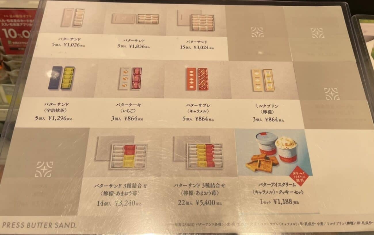 販売場所は、プレスバターサンド(大丸東京店、東京ソラマチ店、小田急マルシェ新宿店、ルミネエスト新宿店、池袋駅店、グランデュオ立川店、名古屋栄三越店、三越豊田店、ルクア大阪店、大阪髙島屋店、いよてつ髙島屋店、博多駅店、東京駅 新幹線北のりかえ口前催事)