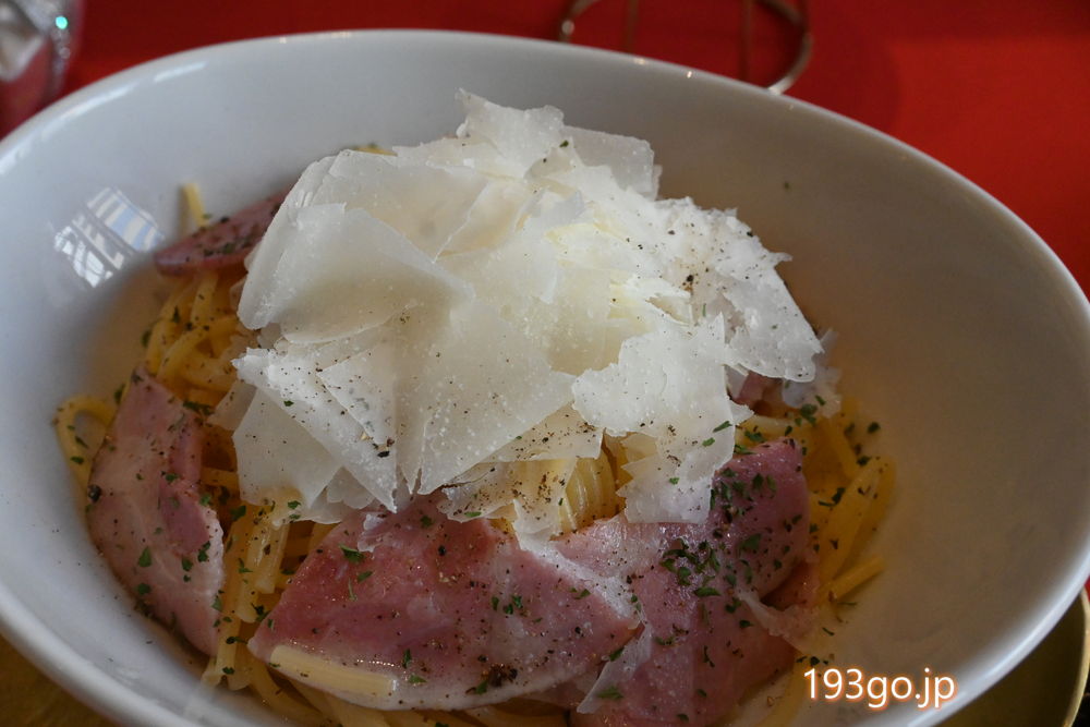 イタリア産ペコリーノチーズがふんわりと削られチーズの風味が口いっぱいに広がる。