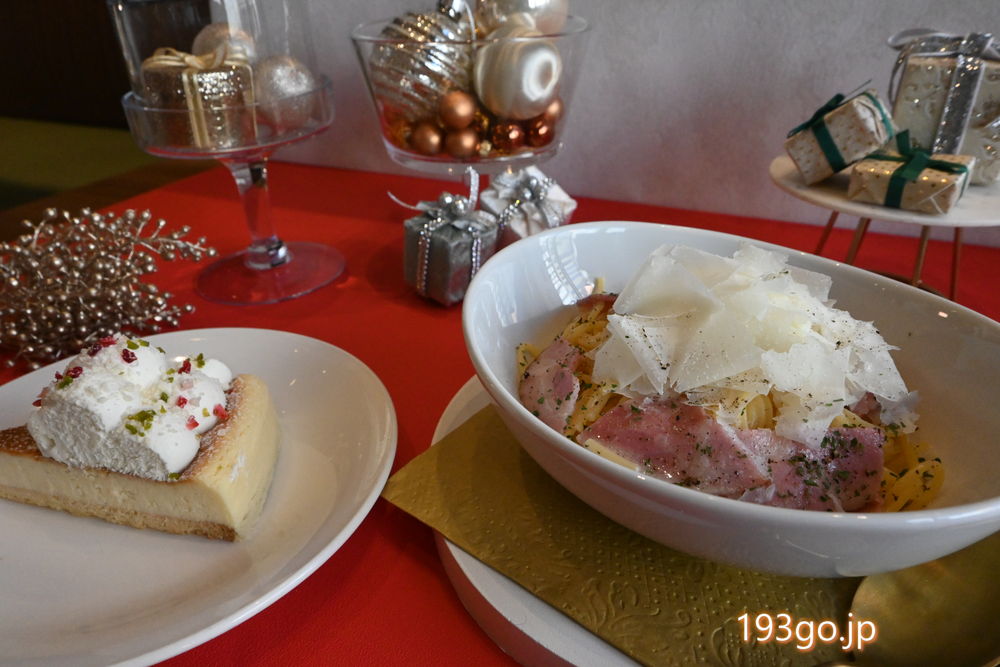 チーズとポークの塩気と旨みの効いたパスタと、しっとりなめらかなチーズタルトは、また食べたい組合せ。