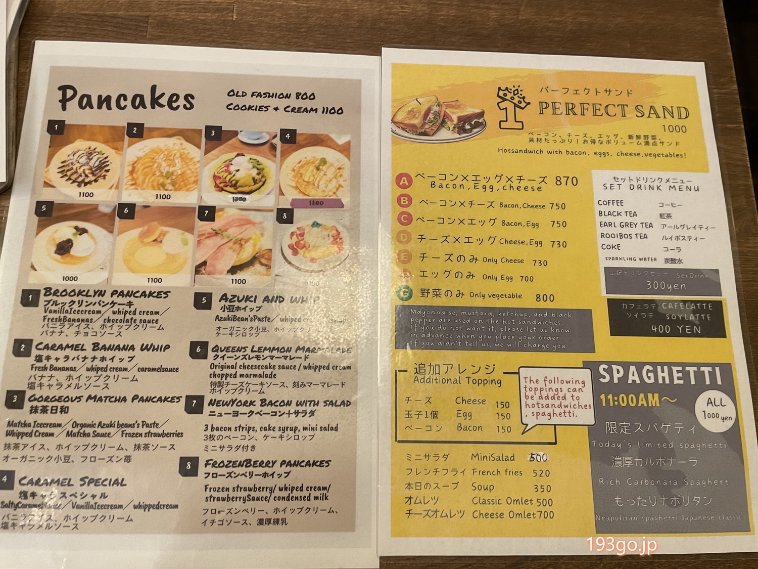 甘いものの気分なら、パンケーキやスイーツが食べたかった。と、惹かれるメニューが多い。