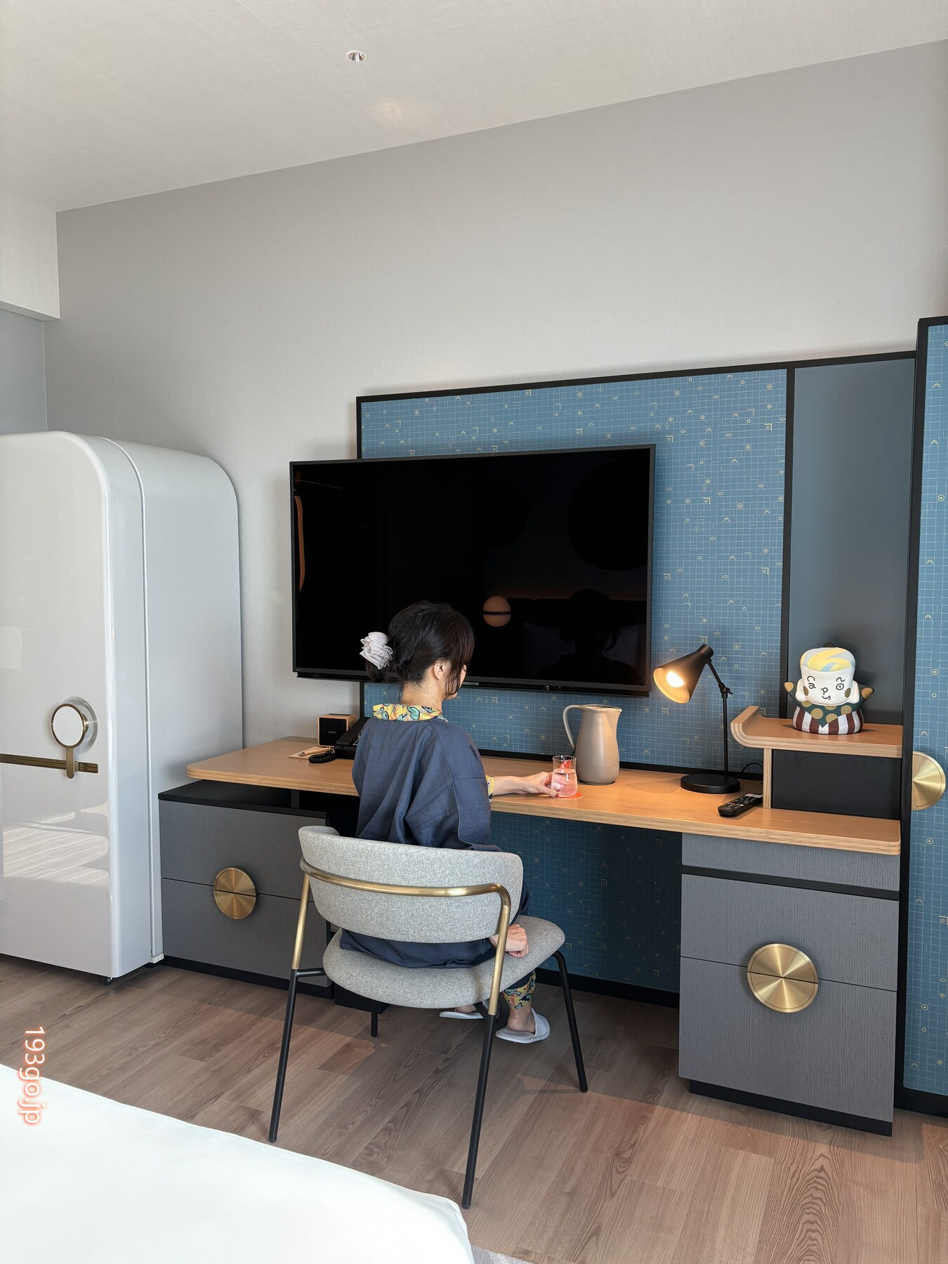 照明やコンセントの差込口も複数あり、最新ホテルならではの設備とおしゃれな配色のアイテムに囲まれて、快適に過ごせた。