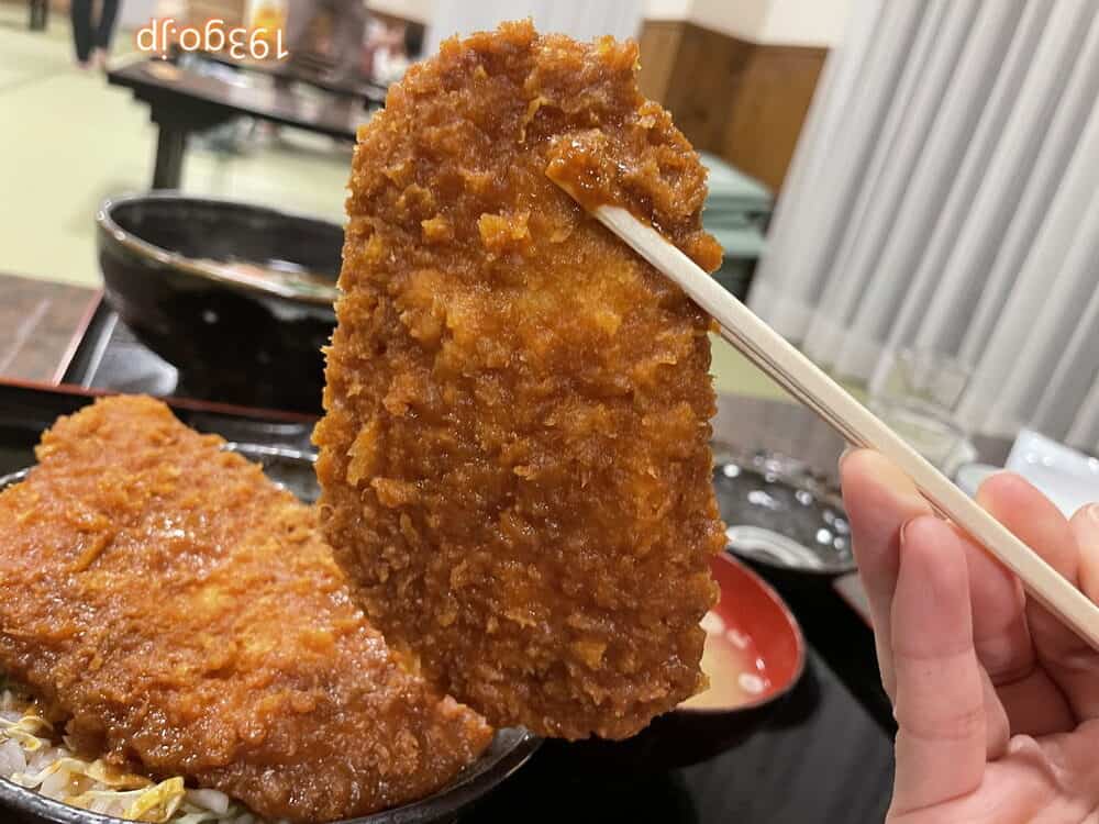 秩父名物わらじかつは、履物の草鞋(わらじ)のように薄くて大きなカツがドーンと乗ったかつ丼!