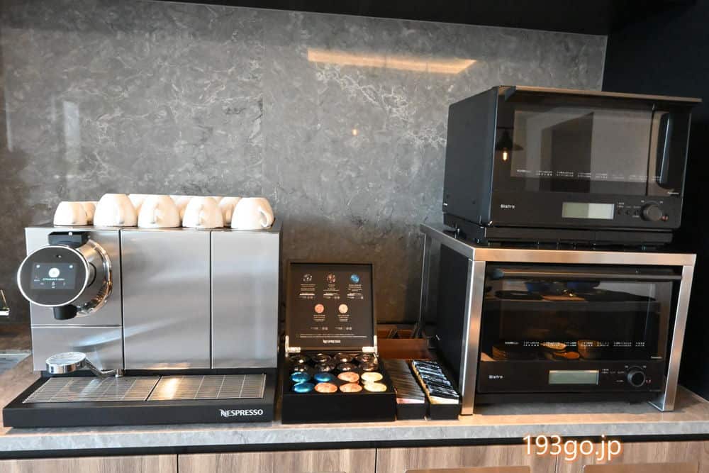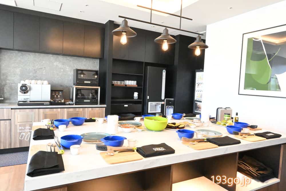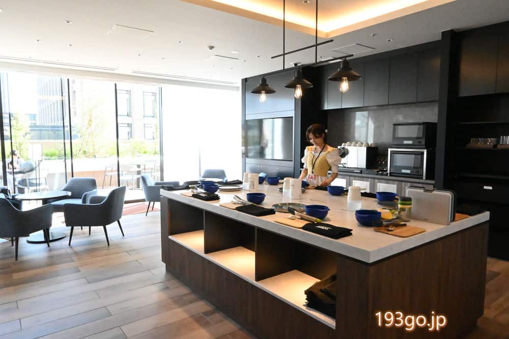 ラウンジは24時間営業で、コーヒーのセルフサービスや、広々したキッチンも活用できる。