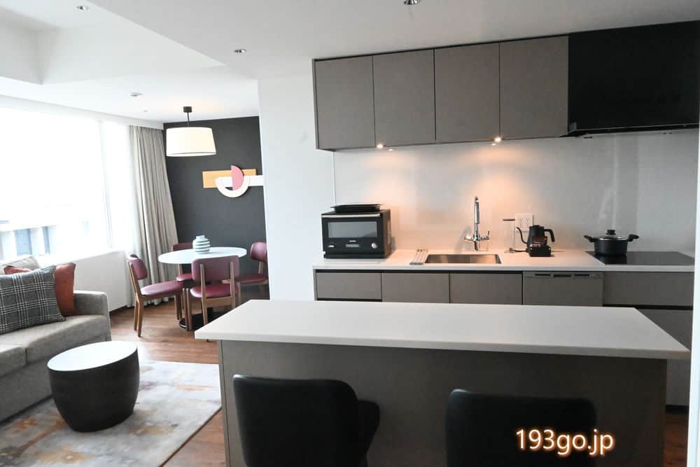 約半数の客室には、サービスアパートメントならではのキッチンや洗濯乾燥機を完備。