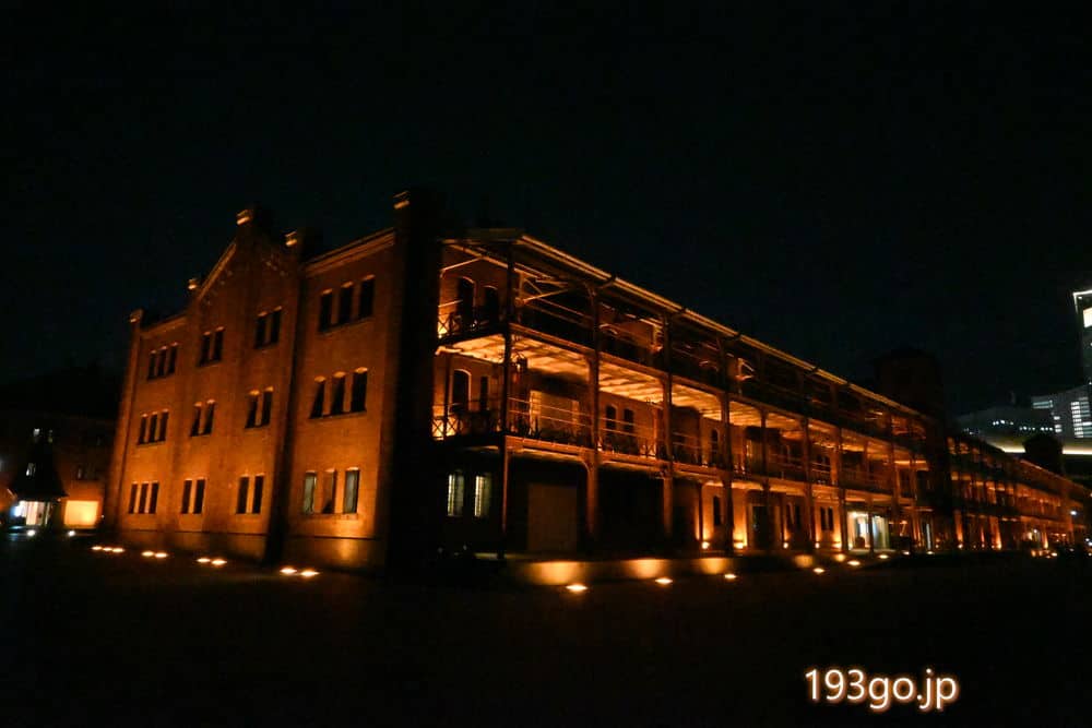 周辺散歩 ライトアップした赤レンガ倉庫、みなとみらいへ