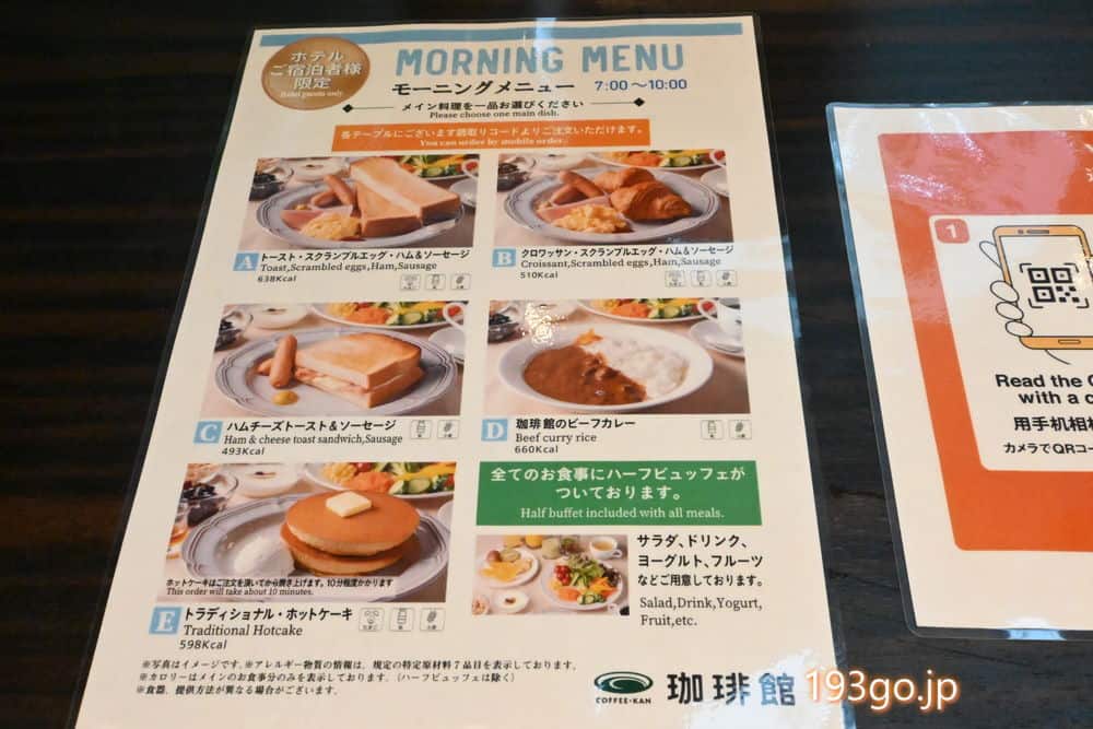 朝食は「珈琲館」でホテル宿泊者限定モーニング