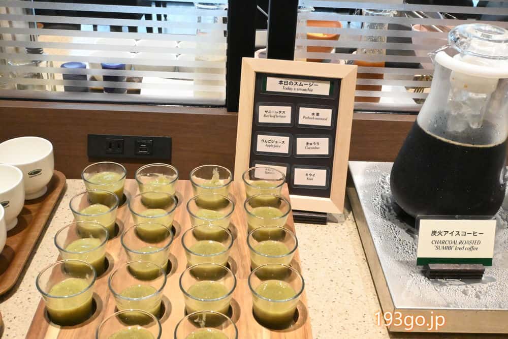 日替わりスムージーや、珈琲館のコーヒーもホット、アイスとあり嬉しい。