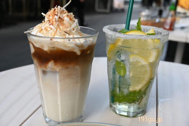 ドリンクは、アイスのハワイアンラテを頼んだら、クリームとココナッツが乗ったラテが登場。