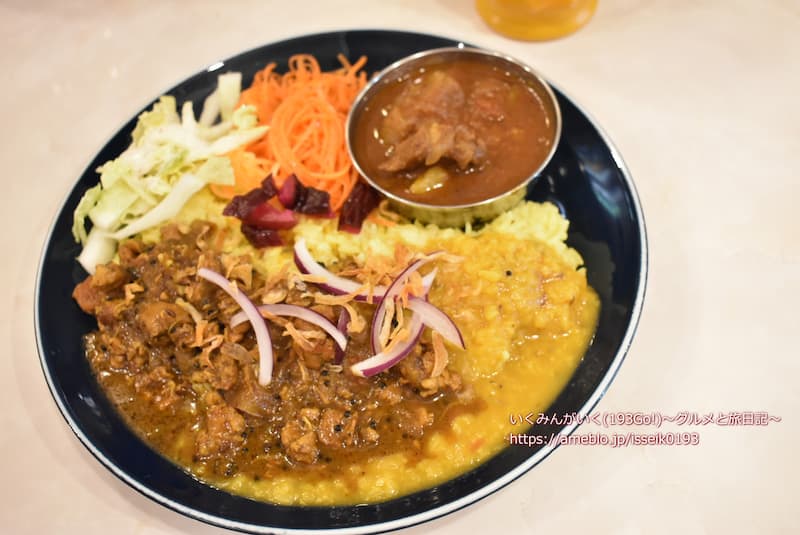 キーマカリーには、スライスの紫玉ねぎと、フライドオニオン。