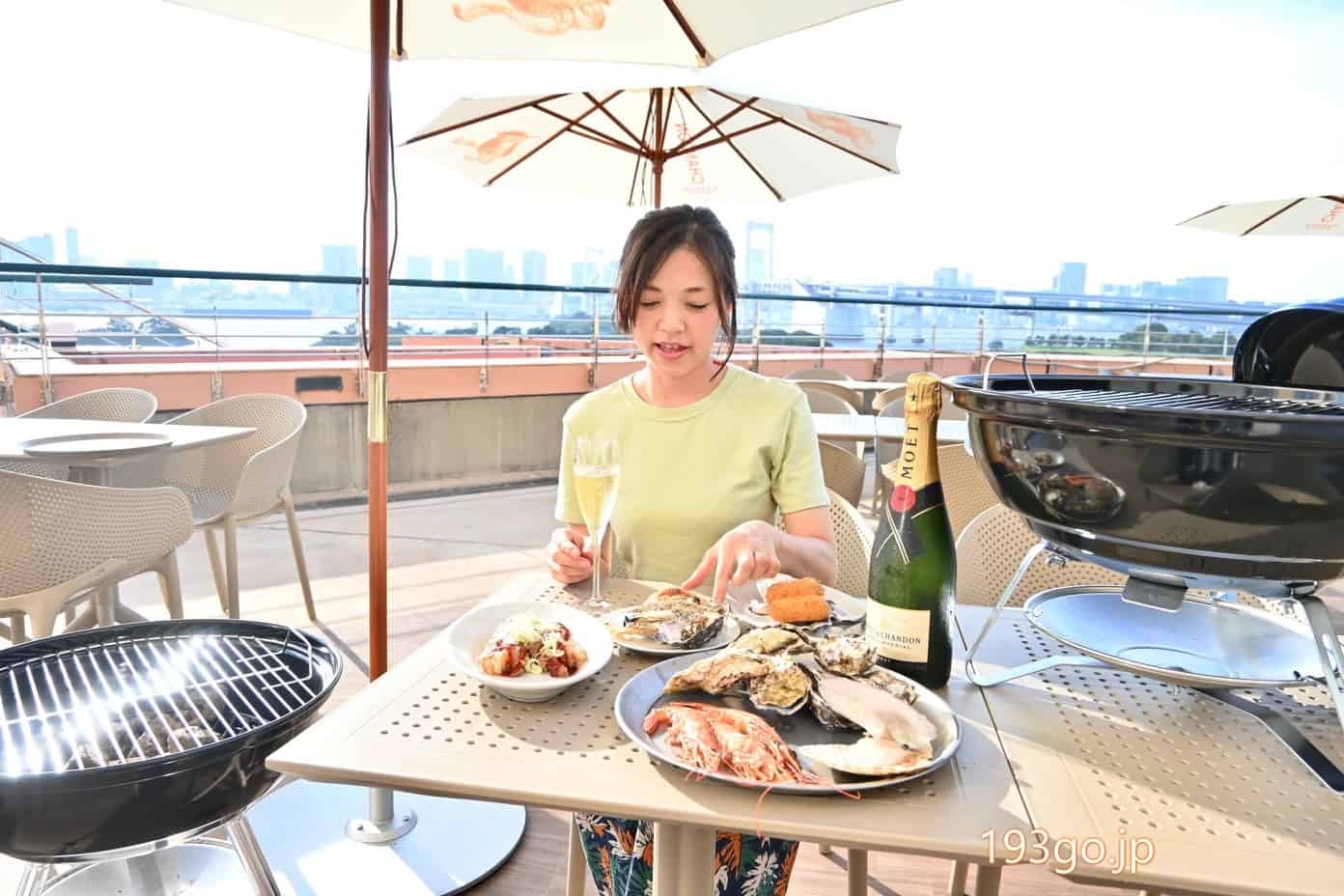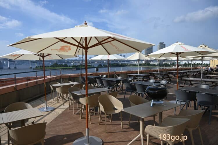 3店舗のうち、唯一テラス併設で、レインボーブリッジや海を望みながら、BBQプランが楽しめる。