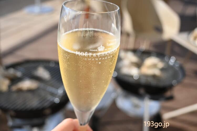 牡蠣のお供には、やっぱりシャンパン、ワイン。