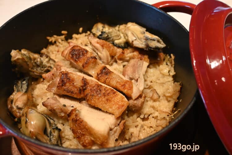 牡蠣の美味しいエキスたっぷりの炊き込みご飯。ゴボウと鶏との相性は抜群。