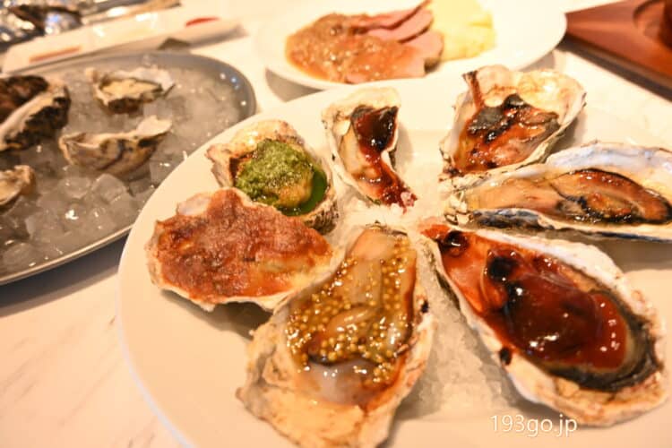 生カキだけでなく、ジェノベーゼソース、モッツァレラチーズ、ヤンニョムソース等さまざまなソースで焼き上げるシェフ特製焼き牡蠣や、貝の出汁をたっぷり利かせたクラムチャウダー、牡蠣をふんだんに使ったパスタ、牡蠣の炊き込みご飯と、カキづくし。