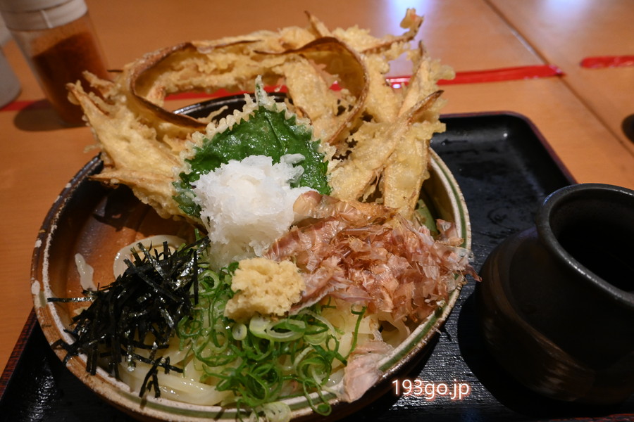 ごぼう天が大きい!薬味たっぷりのツルツル ぶっかけうどん