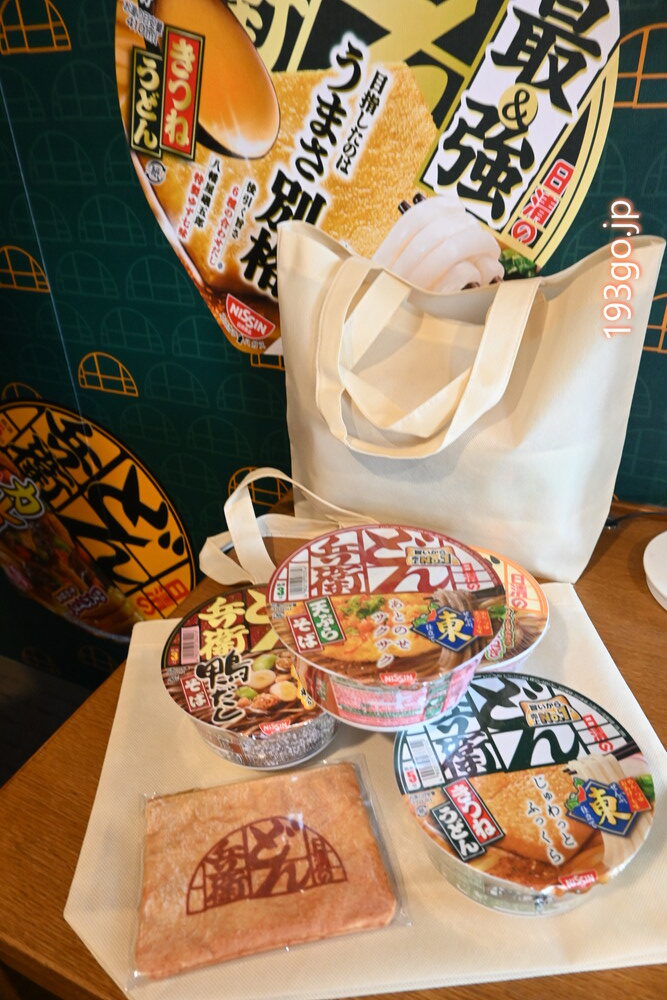 ③「日清のどん兵衛 お土産グッズ」:お一人さまにつき1セットをご用意