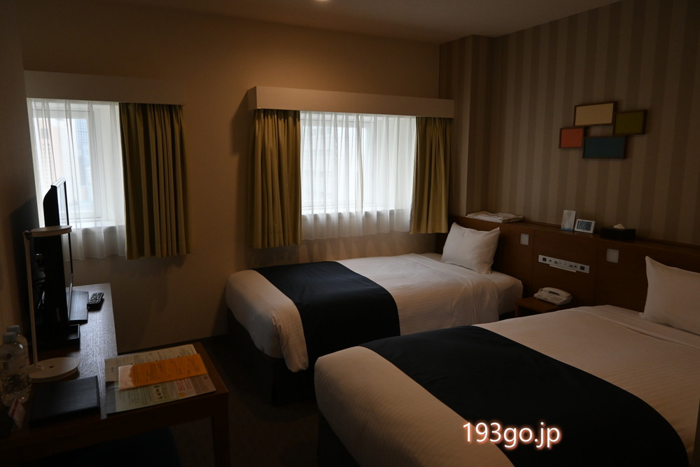 「どん兵衛ルーム」で衝撃を受けた後は、別室の通常仕様のスーペリアツイン(19.5㎡)を見学。