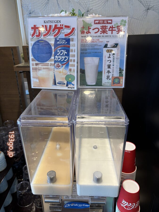 ドリンクには北海道らしく「カツゲン」や「よつ葉牛乳」もあり、地域色がしっかり感じられるのも嬉しいポイント。