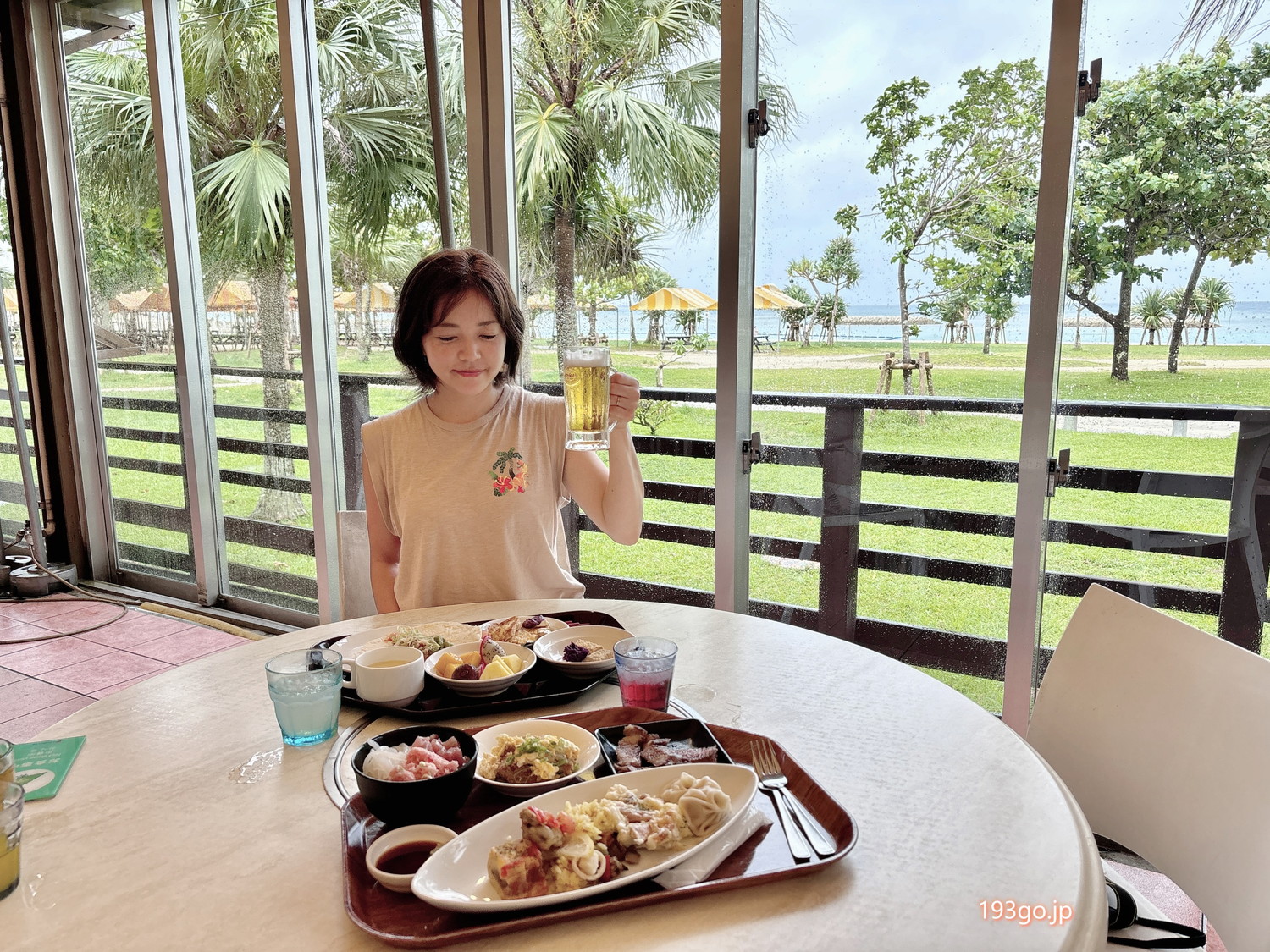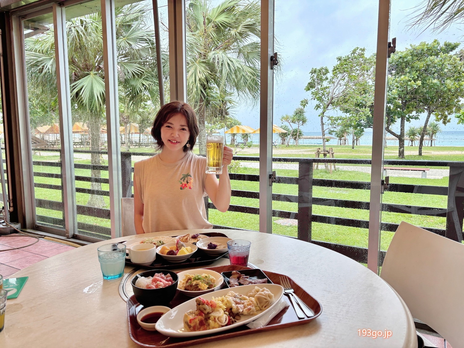 オリオンビールも朝から飲み放題で、海風が心地よいテラス席で乾杯すれば、リゾート気分が一気に加速。混雑が気になる方はオープン直後が狙い目かも。
