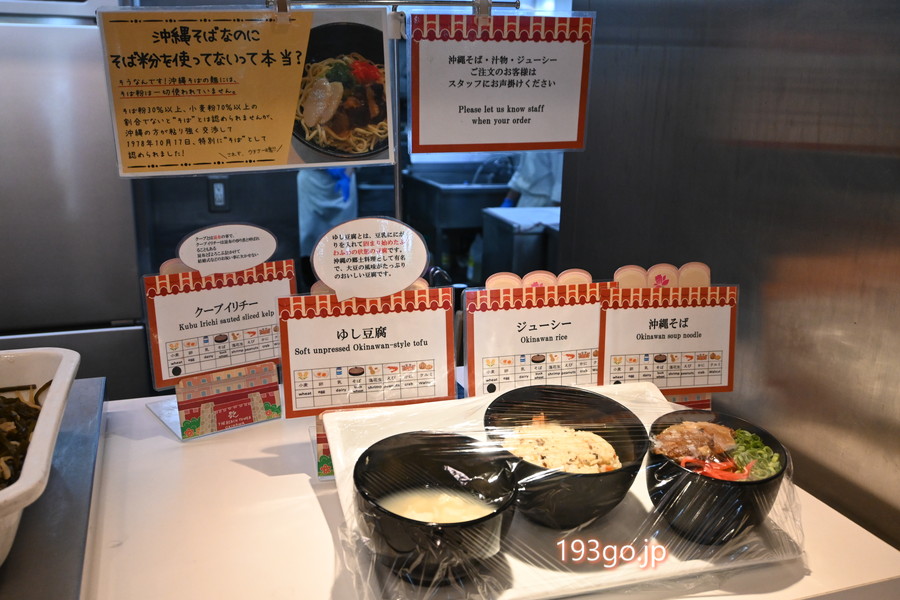 沖縄料理(沖縄そば、ジューシー、もずく、海ぶどう、ソーキなど)に加え、国産黒毛和牛ステーキや厚切りカツ、南国フルーツ、デザートにはブルーシールのアイスも食べ放題!