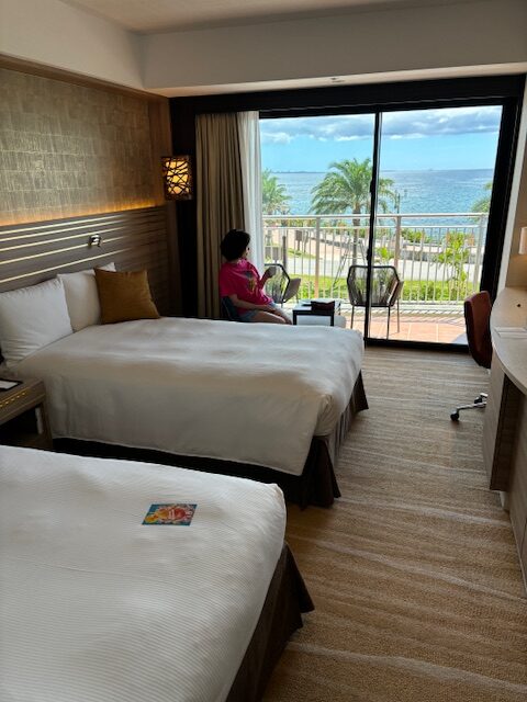 本島での一泊はアメリカンビレッジに隣接する「ダブルツリーbyヒルトン沖縄北谷リゾート」にステイ。 ⇒客室リポ