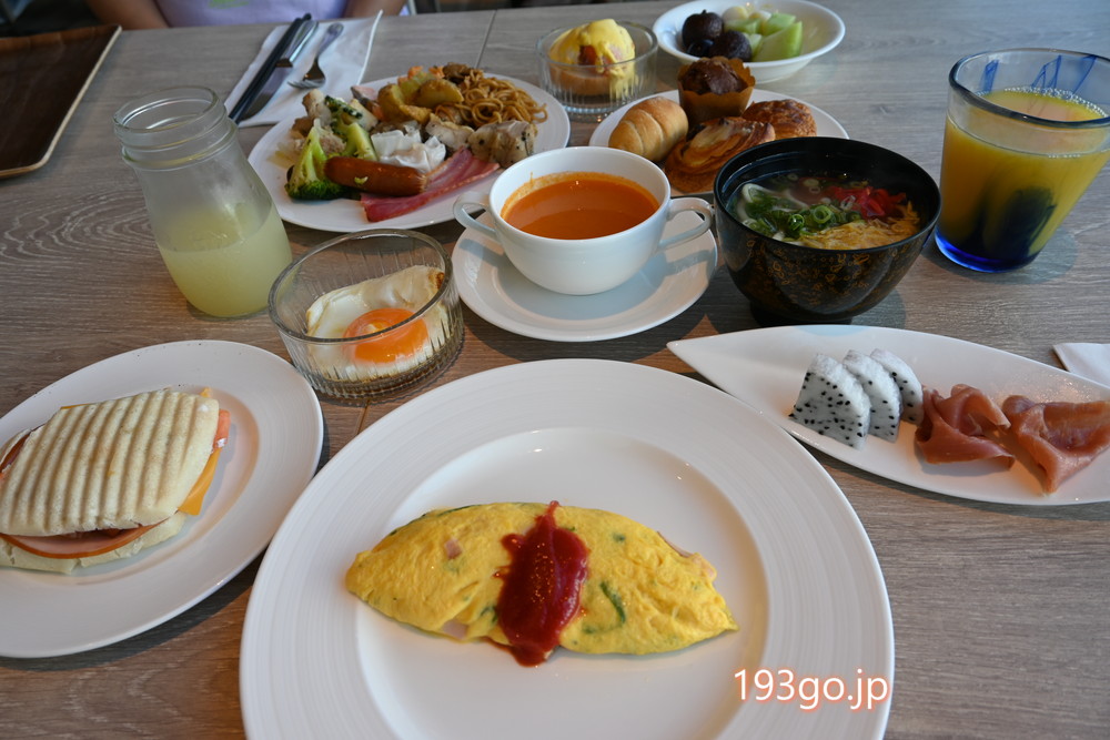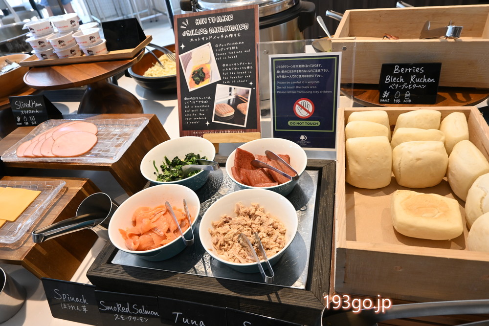 これまで泊まったヒルトンの中ではビュッフェ台も狭く料理の種類は少ない印象。