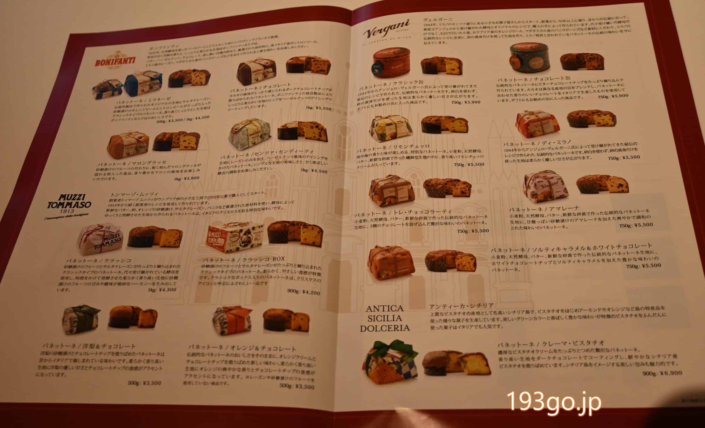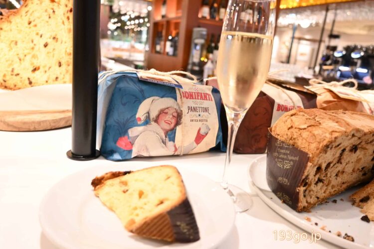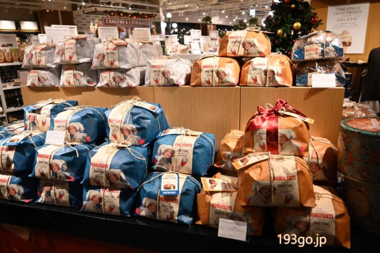 パネットーネは、「ボニファンティ」「トンマーゾ・ムッツィ」「ヴェルガーニ」「アンティーカ ・シチリア」各ブランドの商品が揃い、ドライフルーツとレーズン入りのスタンダードタイプから、3種のチョコチップ、マロングラッセ、ソルティーキャラメル、リモンチェッロ、洋梨&チョコなど様々なフレーバー。