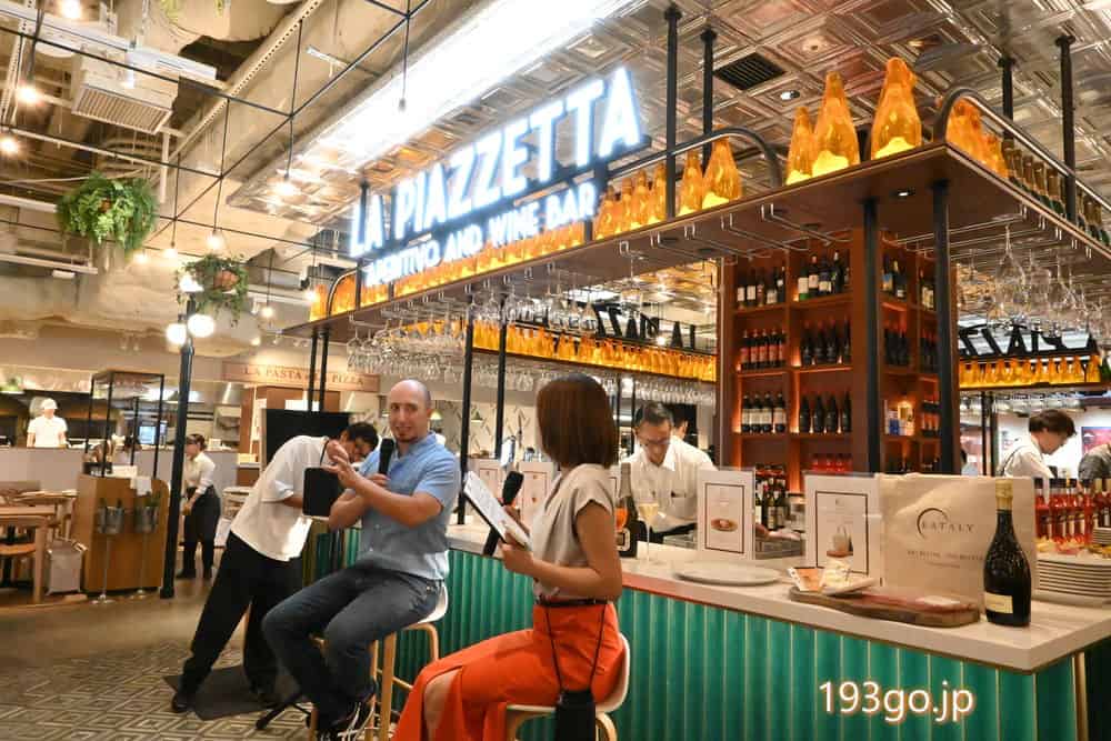 イータリー銀座店は、銀座シックスの6階にあり、イタリアレストランと食材を販売するマーケットを備える日本国内での旗艦店。