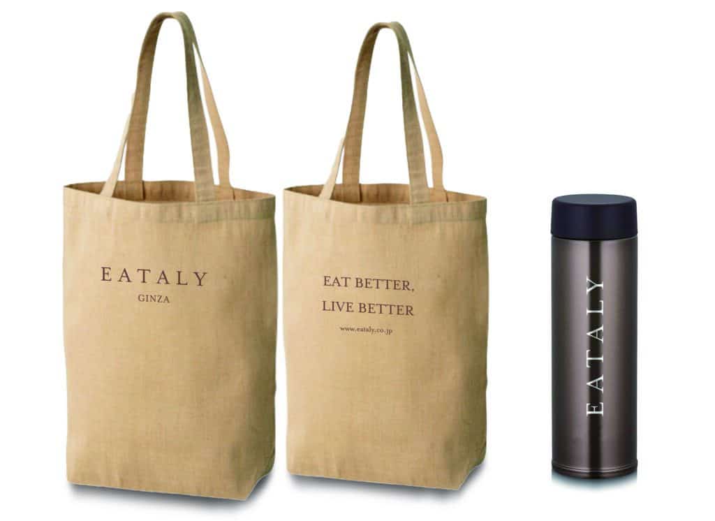 ショッピングにも使えるイータリ銀座店2周年オリジナル保冷バッグに下記アイテムを詰め合わせました。
