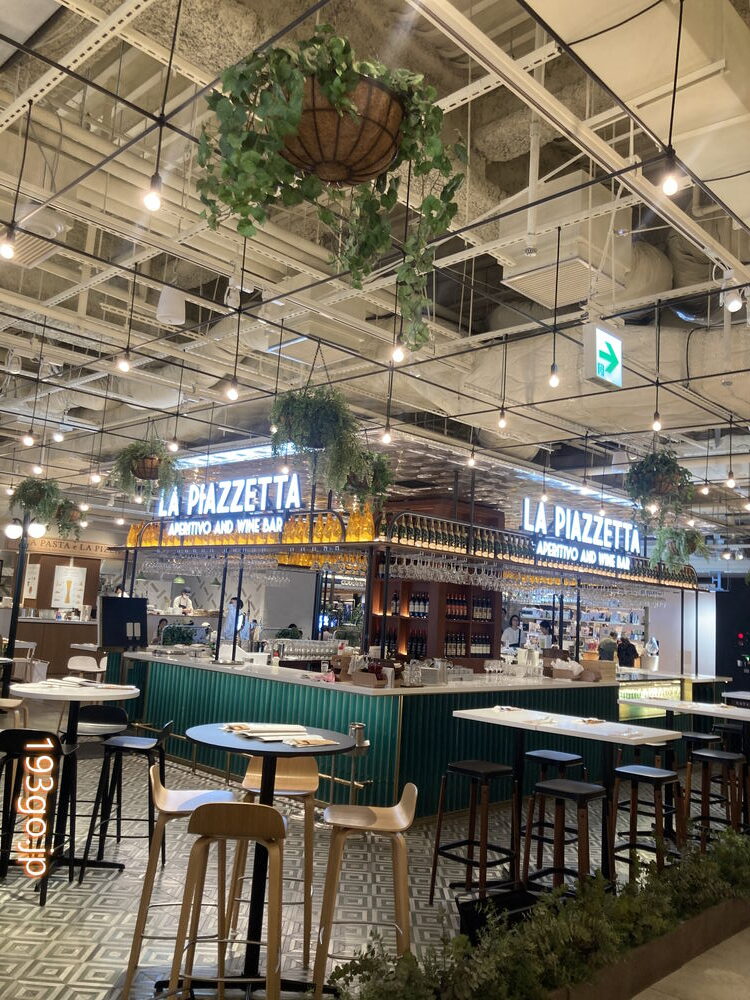 イータリーの日本旗艦店「イータリー銀座店」は、イタリア食材を取り扱う「マーケット」、ジェラートやマリトッツォ、コーヒー、カクテルなどを提供する「カフェ&バール」、奥のスペースにはゆっくりと食事を楽しめる「レストラン」が備わる。
