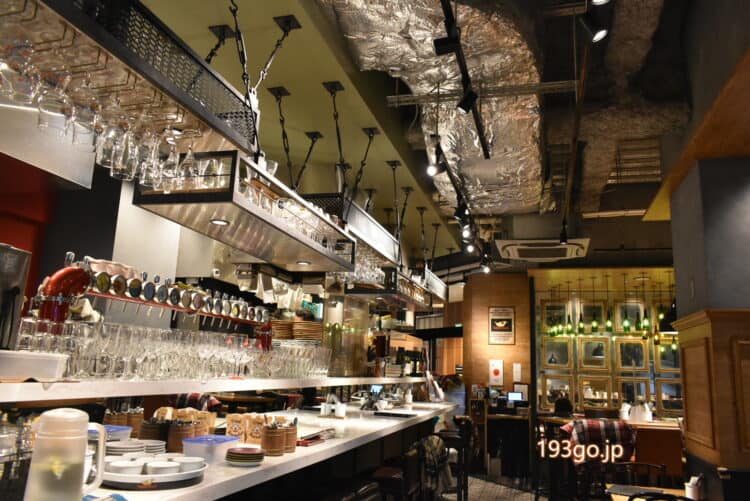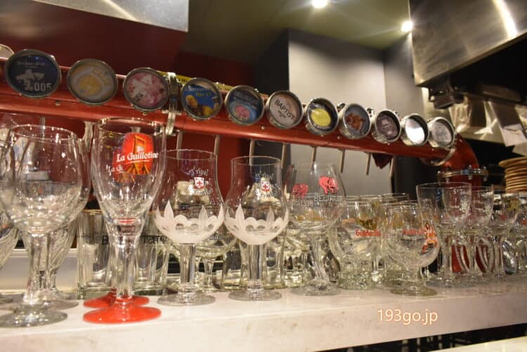 天井が高く広々、クラフトビールも揃い、ビールサーバーに可愛らしいグラスがズラリ