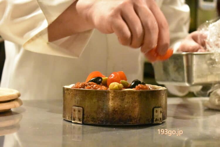 駅近でシカゴピザ!型に具材を詰め込むピザづくりのシーンも
