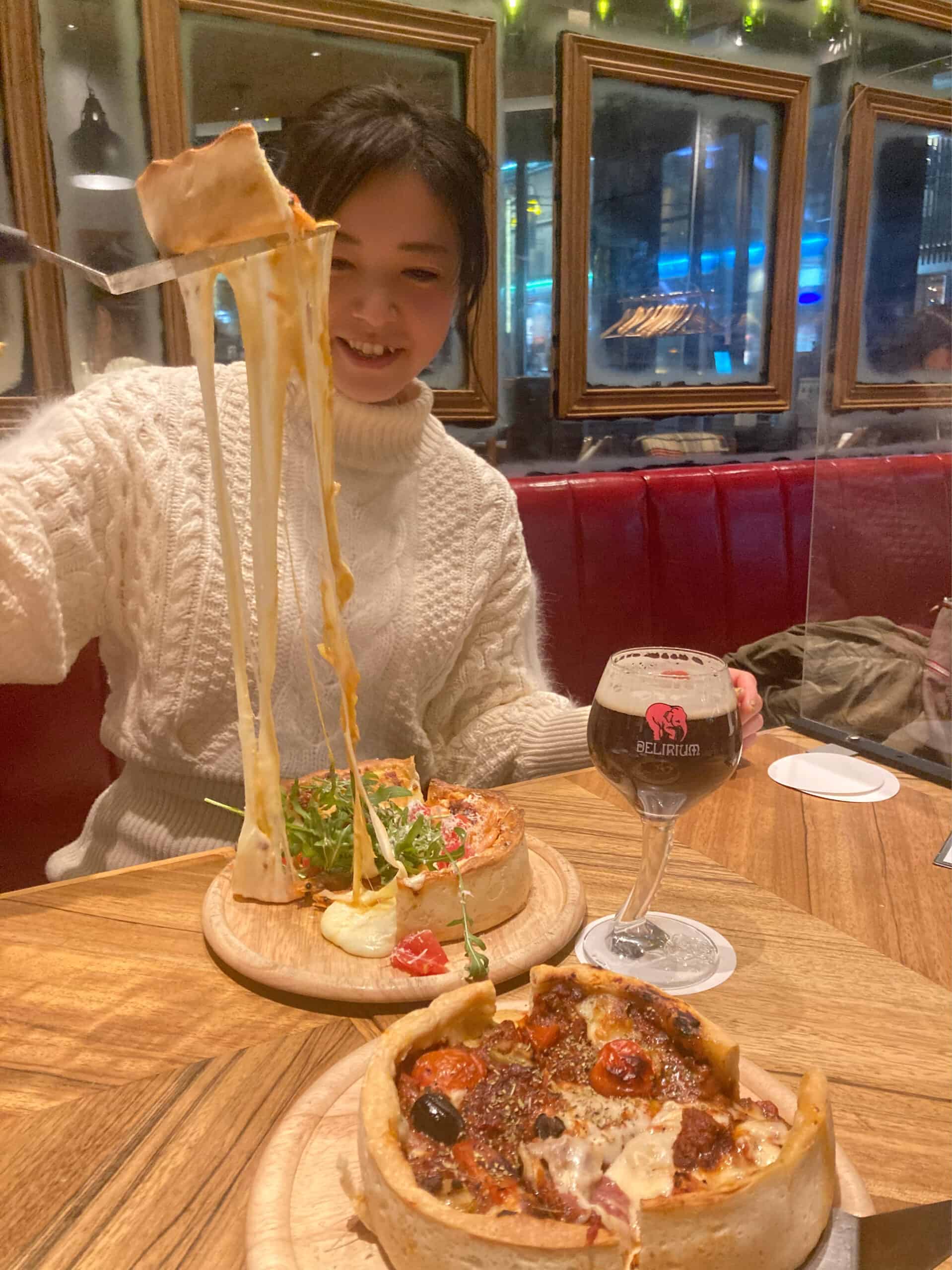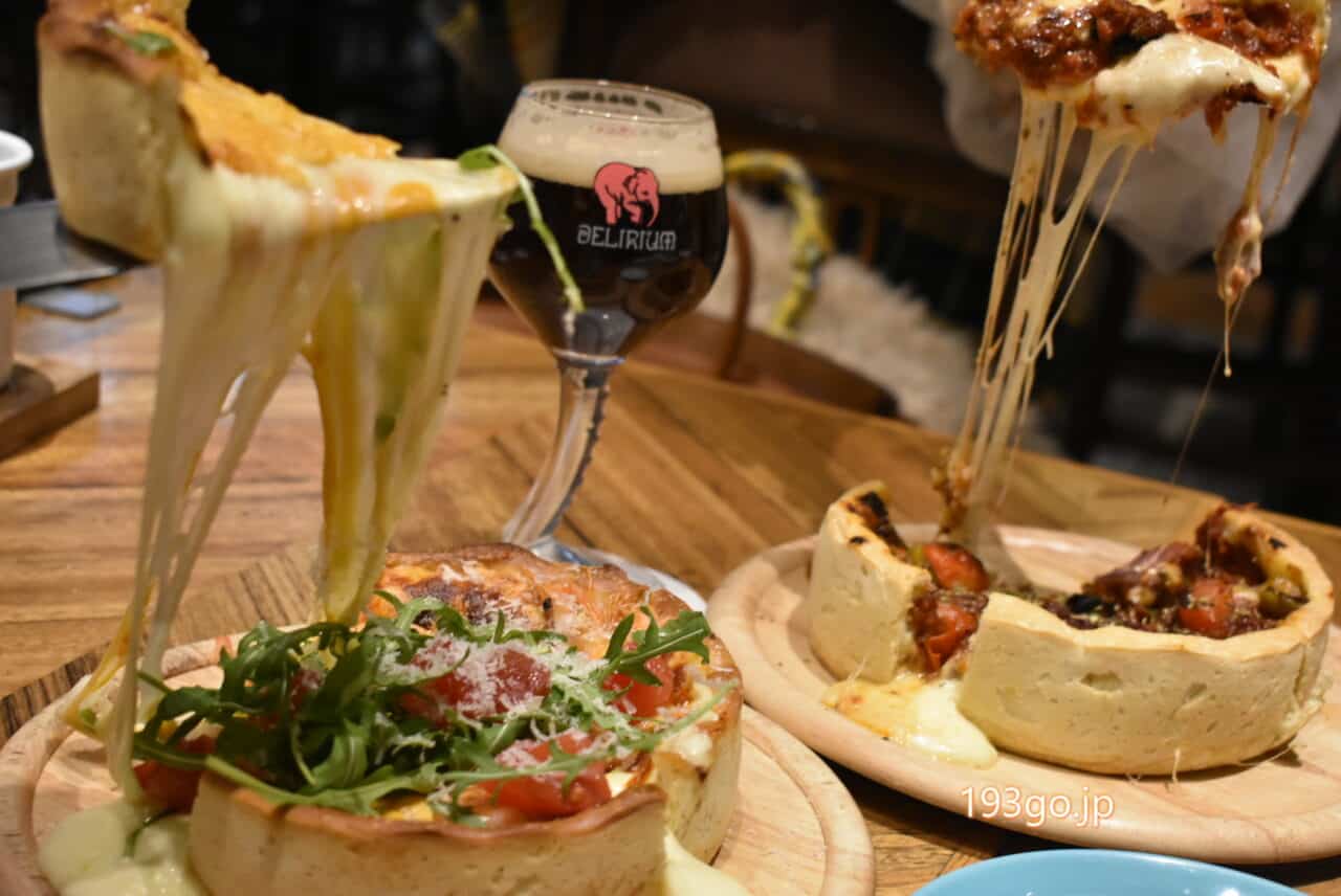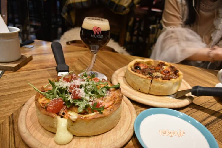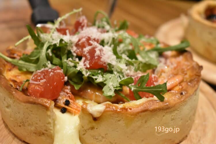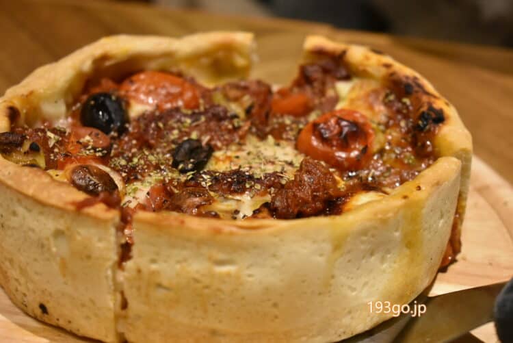 クリスピーな生地とチーズたっぷり味わいたい人、ボリューミーグルメ好きには持ってこいのシカゴピザ!