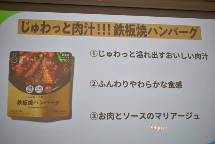 「ファミマルKITCHEN PREMIUM(ファミマルキッチンプレミアム)」の目玉商品「じゅわっと肉汁!!!鉄板焼ハンバーグ」