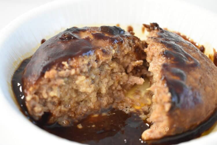 商品名通り、肉汁をハンバーグの中に閉じ込めナイフを入れた瞬間に肉汁がジュワっとあふれだす!ソースはポルチーニ茸を隠し味に濃縮ワインを加えた贅沢なデミグラスソース。
