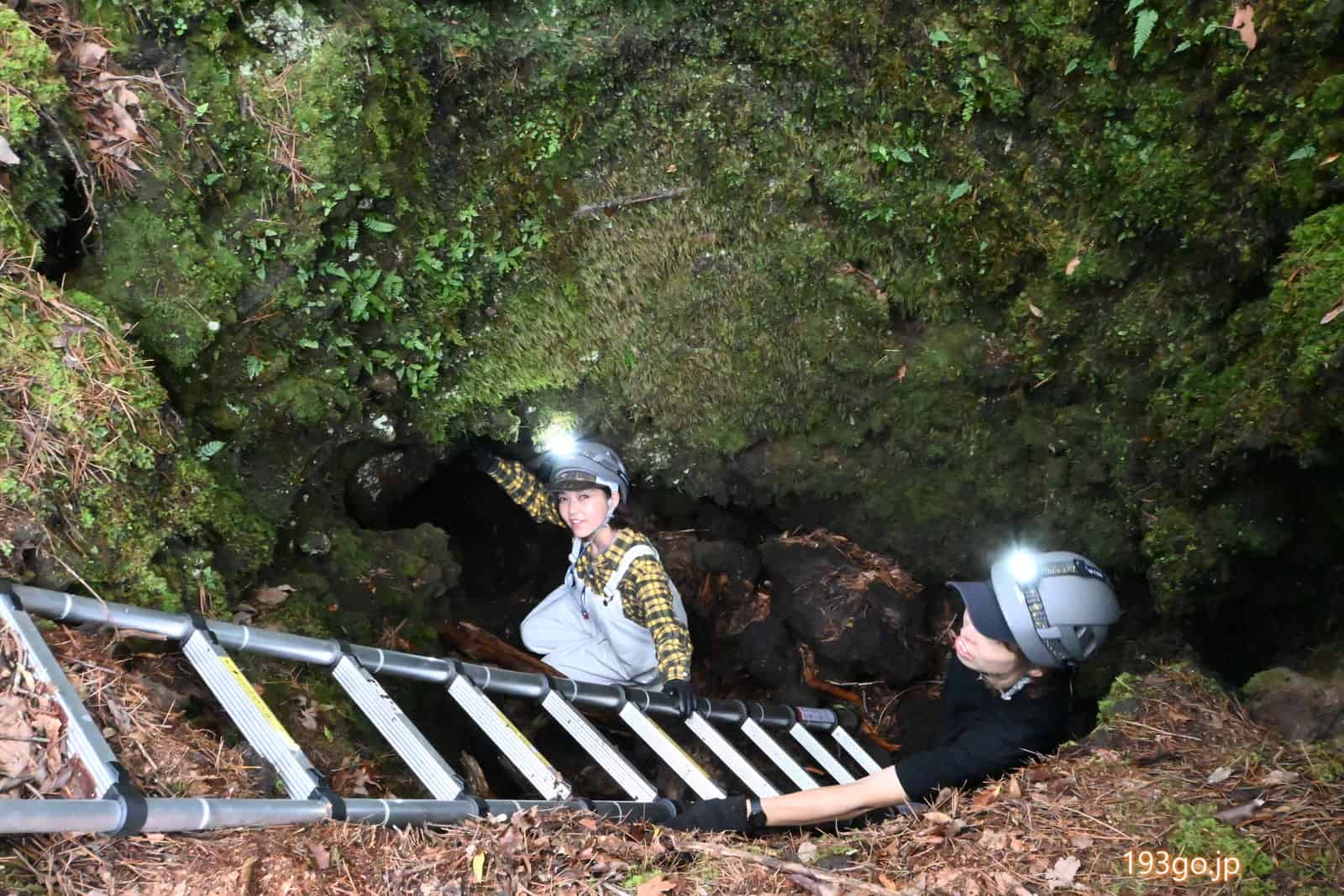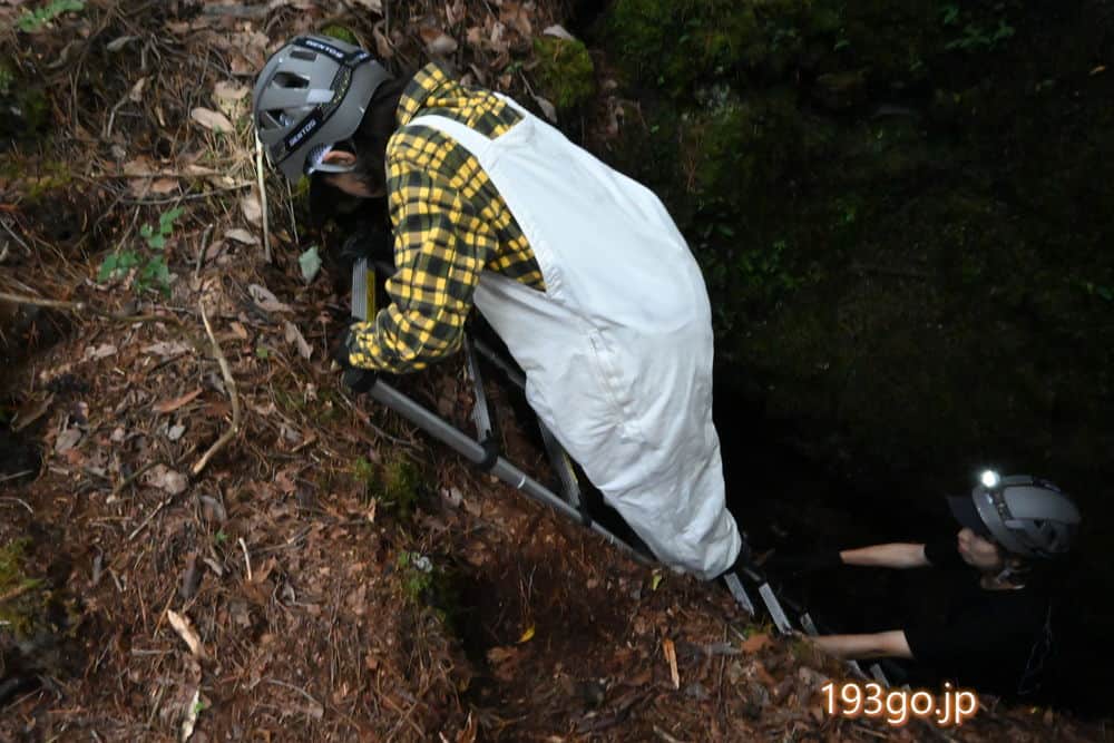 続いて2つ目の洞窟へ。今度は奥が深そうで、梯子がかけられている。